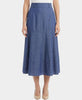 Printed Denim Midi Skirt
