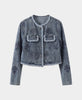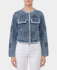 - Embossed Rose Denim Jacket w/ Pearl Trim