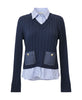 - Striped Blouse w/ Knit Overlay