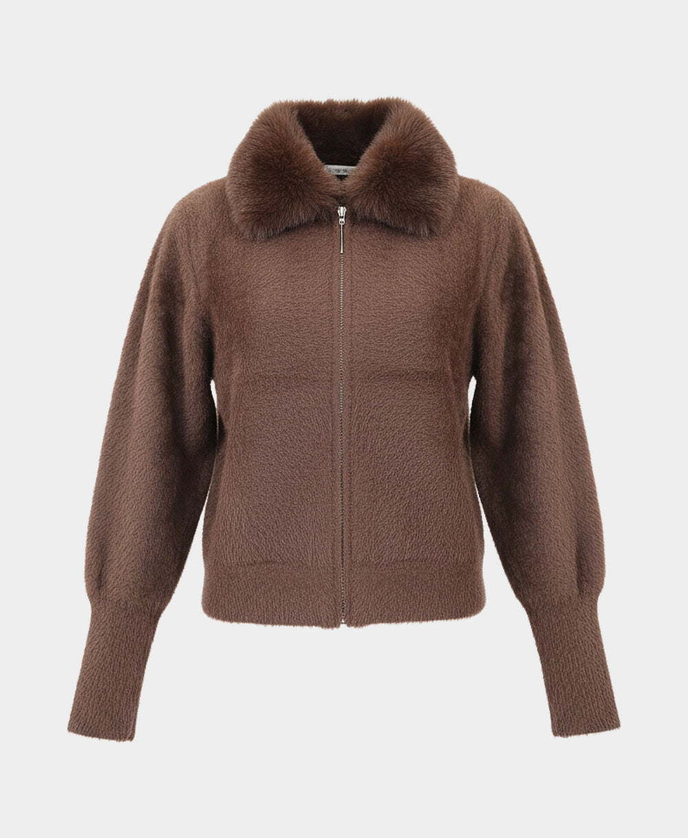 Shiny Puffer Down Jacket w/ Shearling Trim