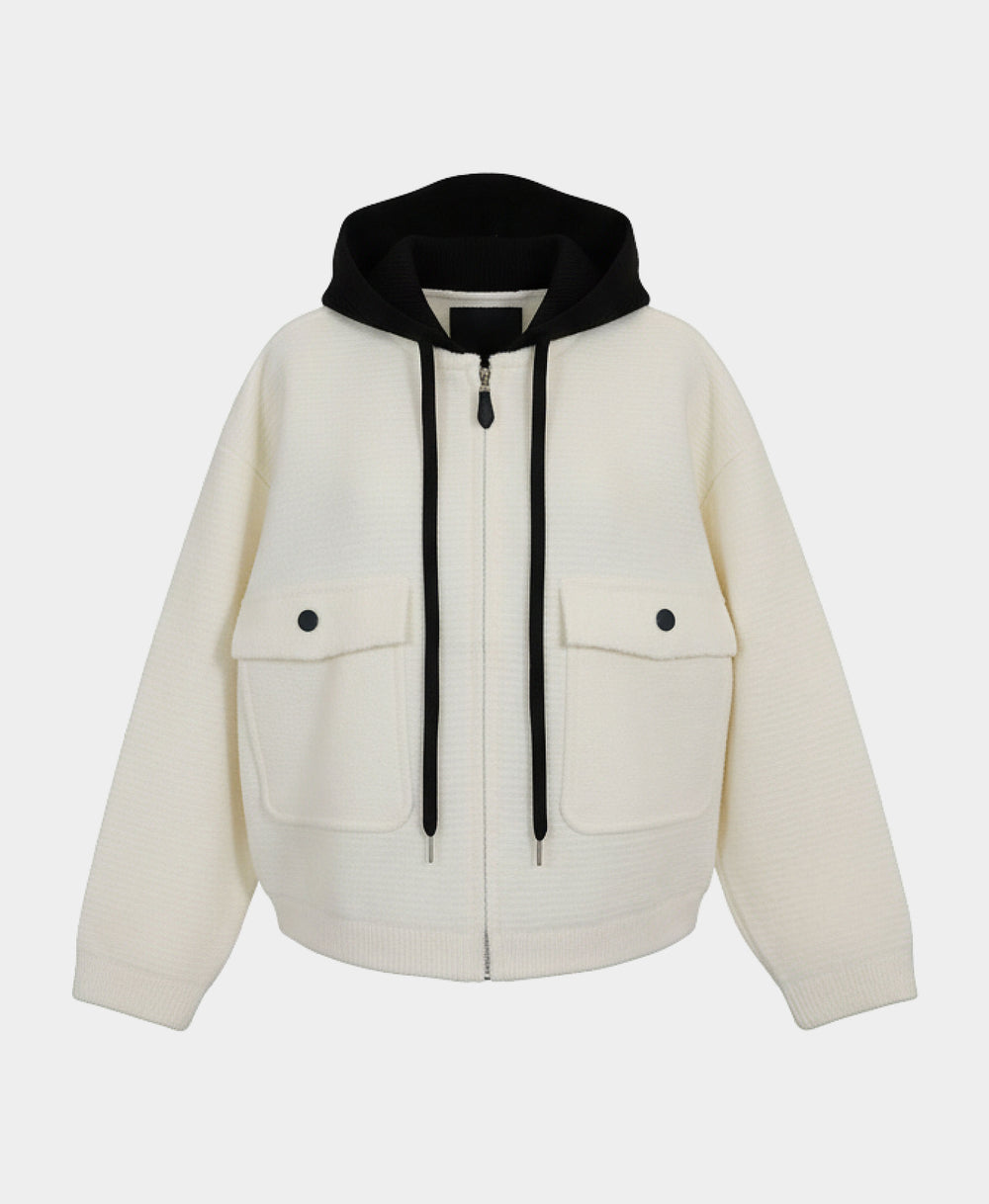 Faux Leather & Leopard Trim Jacket w/ Hood