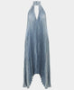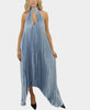 - Satin Pleated Asymmetrical Halter Maxi Dress