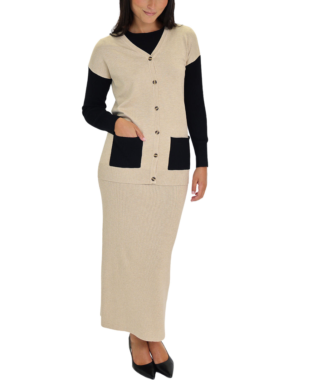 Solid Cardigan & Skirt Set - 2 Pc Set