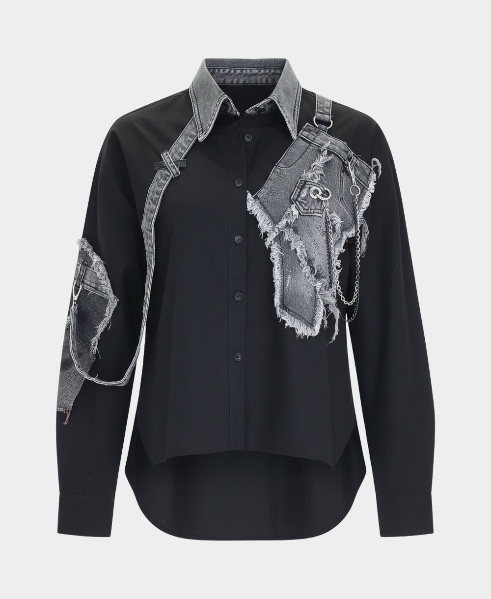 - Blouse w/ Denim Trim