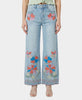 • Embroidered Flowers Wide Leg Jeans